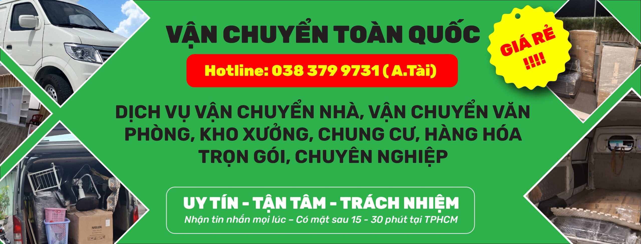 Với nhiều năm kinh nghiệm trong lĩnh vực vận chuyển nhà, văn phòng, nhà trọ, Mr. Tài và đội ngũ Vận Chuyển Toàn Quốc cam kết mang đến cho khách hàng dịch vụ trọn gói, an toàn và tiết kiệm nhất.